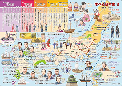 『学べる日本史 3 近世編 (江戸時代)』は、小学生向けの基本的な日本史を学べるポスターです。お風呂で楽しく学べるデザインで、地図が含まれており、封筒で発送されます。