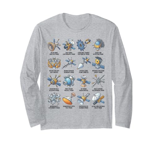 宇宙探査機は、ローバー、オービター、着陸機などがあり、天文学的データを収集します。宇宙探査チャートはミッションや軌道を示します。長袖Tシャツは、探査機や宇宙テーマのデザインが特徴です。