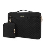 MOSISO 13-14インチPCケースは、MacBook Air/Pro(13-13.3インチ)やMacBook Pro 14に対応。360度保護、ハンドル、ポケット、収納ポーチ、ベルト付きで便利なブラックのキルティングデザインです。