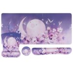 MOSISO リストレスト キーボード&マウスパッドセット、大型ゲーミングデスクパッド&マウスパッド&キーボードリストレスト&コースター、人間工学に基づいた滑り止めマウスパッド&イージータイピングパッド、隆起したメモリーフォーム、月と花