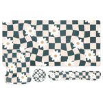 MOSISOのデスクパッドセットは、大型のゲーミングマウスパッド、キーボードリストレスト、コースター付き。波状市松模様とデイジー柄、人間工学デザインで滑り止め。低反発素材のブルー。