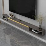 寝室やリビングに最適な吊り下げ式テレビキャビネット。壁取り付け型で、ゲームコンソールやストレージとしても使用可。サイズは140cm(55in)、ダークグレーのスタイリッシュなデザイン。