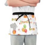 EOSDTのアートプリントサーバーエプロンは、鮮やかなひまわりと蝶のデザインが特徴。ポケット付きで、サービス業に最適。サイズは25.2″ x 11.8″です。