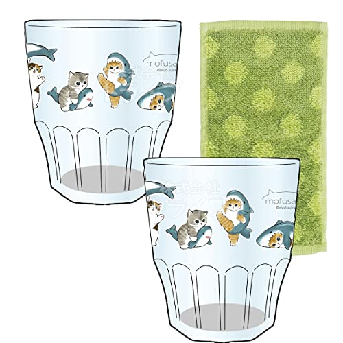 オーエスケー ハーフタオル付 mofusand プラスチック コップ 2個セットは、可愛らしいさめにゃん柄のデザインが特徴です。軽量で持ち運びに便利なプラスチック製で、使いやすさも抜群です。