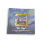 ファン・ゴッホの《星月夜》をデザインした切手型ブックマーク。メタリックゴールドの額装で、重厚感のある金属プレート。読書や手帳に最適なアートアイテム。ギフトやプレゼントにもおすすめです。