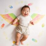 インスタ映えする月齢フォトシート「天使のはね」。赤ちゃんの成長を記録するマンスリーフォトや寝相アートに最適。100日やハーフバースデーにもぴったりで、出産祝いにもおすすめの写真グッズです。