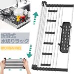 水切りラックは、シンク上に設置可能な折りたたみ式。シリコーントレー付きで、6本の滑り止めボタンを装備。錆びないステンレス製で抗菌性あり。伸縮可能で耐熱性も高く、台所の省スペース化を実現します。