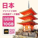 日本国内で使える10日間10GBの高速データ通信プリペイドSIMカード。テザリング対応、契約不要で便利。旅行や出張に最適な商品です。