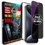 Mostean【覗き見防止 + ブルーライトカット】対応 iPhone15 Pro Max ガラスフィルム【2種機能】覗き見防止 ブルーライトカット いPhone15 Pro Max 保護フィルム プライバシー 目の疲れ軽減 貼り付け簡単 ガイド枠付き アイフォン15 Pro Max フィルム【 6.7インチ】の製品情報