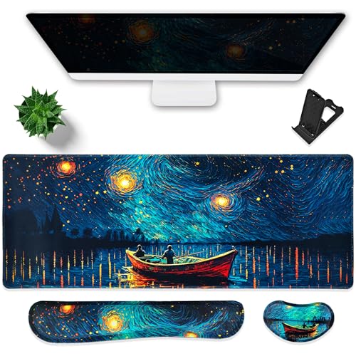 Hopipad 大型ゲーミングマウスパッド 防水 マウスリストレスト+キーボードリストレストセット 滑り止めゴムベース 人間工学に基づいたコンピューターデスクマット 手首サポート付き キーボードとマウス用 タイピングと痛み緩和 高価買取中