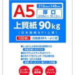 厚口の上質紙90キロ、国産の日本製紙NPI上質A5サイズ100枚入りです。高い耐久性と滑らかな筆記感が特徴で、プレゼン資料や重要書類に最適です。