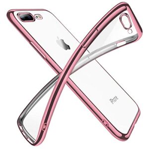 FANMINGSIDI 対応 iPhone ケース 8Plus/7Plus 用 クリア 透明 tpu シリコン メッキ加工 スリム 薄型 5.5インチ スマホケース 耐衝撃 ストラップホール 黄変防止 一体型 人気 携帯カバー ピンク