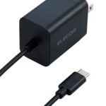 エレコムの充電器は、Type-Cケーブル一体型で1.5mの長さがあります。USB PD対応、20Wの出力、PSE認証取得。GaN技術を採用し、折りたたみ式プラグでコンパクトなブラックデザインです。