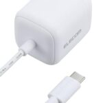 エレコムの30W USB PD対応充電器。Type-Cケーブル一体型で1.5m、折りたたみ式プラグ。iPhone 15やOPPO、Pixelなど各種デバイスに対応。PSE認証取得の安全設計。ホワイト色。