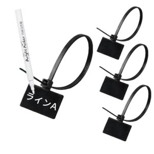 HIMIHOM ケーブルタグ 防水 ケーブルラベル 耐熱 タグ付き結束バンド ナイロン製 100本入れ マーカー付き 手書き可能 ケーブルタイ ケーブルまとめる コード整理 屋内・屋内両用 倉庫 オフィス 工場用 (100本) (黒)