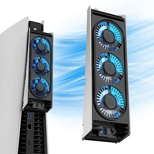 MEQI PS5冷却ファンは、LEDライトとUSB3.0ハブ付きの静音クーラーファンです。PlayStation 5ディスク/デジタル版に対応し、垂直・水平配置可能で効率的に冷却します。