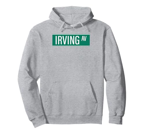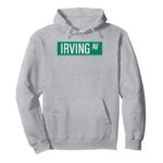 アーヴィングアベニューのNYC道路標識デザインをあしらった男女兼用パーカー。快適な着心地とスタイリッシュな印象が魅力の一着で、普段使いやお出かけに最適です。