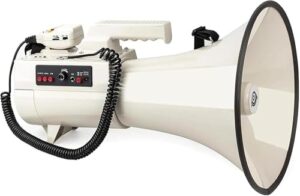 ハンドヘルドメガホン、75W、SDメモリカードリーダー、録音およびアラーム機能付き、USBフラッシュドライブ、補助入力メガホン、屋外での使用、スポーツイベント、避難訓練、デモ、消防に適しています