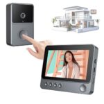 ワイヤレスのインターホンで工事不要、Wi-Fi不要。70°全視野角のカメラ対応、4.3インチスクリーン、双方向通話あり。ビデオドアベルと128GBのストレージ付き、簡単設置で便利。