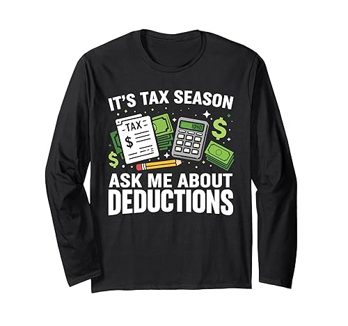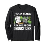 税季節にぴったりな長袖Tシャツ。会計士や税理士、財務に関心がある方にお勧めのデザイン。面白い税の言葉やグラフィックが魅力!