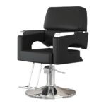 Kirnuo サロンチェアは、360度回転、高さ調節可能なヘアカットチェアです。フットレスト付きで、モダンでシンプルなデザイン。カラーはブラック、シルバーシャーシ。