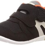 ムーンスターのベビーシューズMS B111は、12~15cmのサイズ展開で、男の子・女の子向け。ブラック/オレンジの配色が特徴で、3Eの幅広設計で快適な履き心地を提供します。