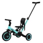 BTM三輪車は、足けりバイク・ベビーカー・かじとり・手押し棒付きの1台4役。軽量設計で1-5歳の子供に最適。簡単組み立てで、誕生日プレゼントにもぴったり。グリーンカラー。