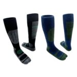 TENOCEEスキーソックスは、厚手で暖かく、防寒効果に優れています。登山やスノーボードに最適な吸汗速乾素材を使用。灰黒色とネイビーの2足入り、サイズはLでジュニアにも対応。