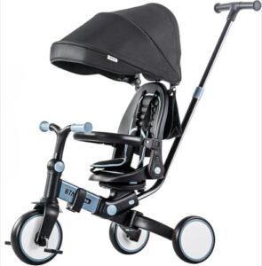 BTM子供用三輪車は4in1のデザインで、押し棒付きの安全な乗り物です。1歳から2歳の幼児向けで、軽量設計。キッズバイクとしてプレゼントにも最適です。