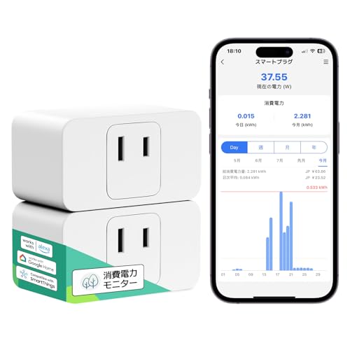 Merossスマートプラグは、WiFi接続で遠隔操作や音声コントロールが可能。消費電力モニター、タイマー機能搭載で省エネ。Alexa、Google Home、Smart Things対応、2個入り。