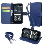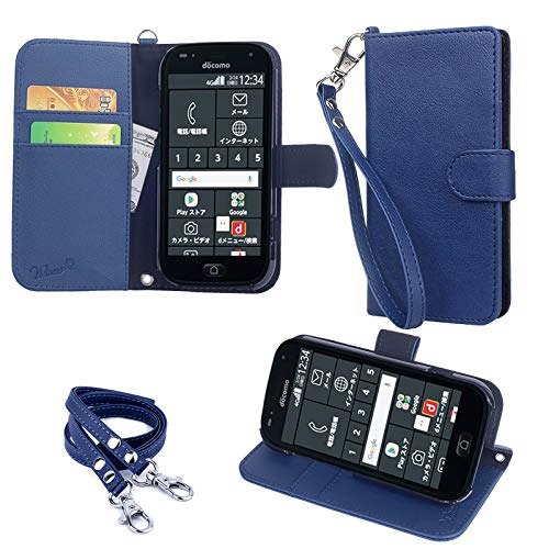 wisers らくらくスマートフォン F-42A / me F-01L 対応 手帳型スマホケース (ダークブルー) 着脱しやすい (カードホルダー/スタンド機能付き) ストラップ 2種付き (ハンドストラップ/ネックストラップ)の高価買取