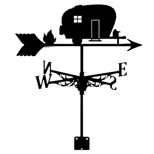ウェザーベーンキャンプサイト用の防錆スプレーペイント仕上げ。屋根に取り付け可能なブラケット付きで、ガーデンやガレージの装飾に最適な風向インジケーターです。