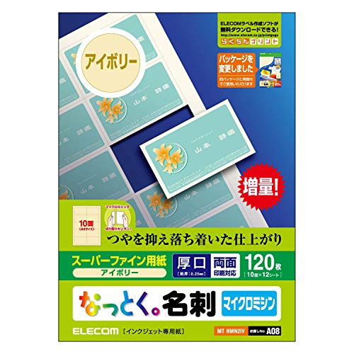エレコムの名刺用紙はA4サイズで、マット紙仕上げの120枚入りです。鮮やかな印刷が可能で、ビジネスやプライベートの名刺作成に最適です。簡単にハサミやミシン目で切り離せます。