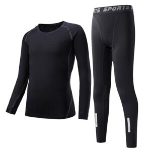 [Muxuryee] スポーツインナー キッズ 上下セット ジュニア サッカー インナーシャツ 長袖 スポーツタイツ コンプレッションウェア 野球 アンダーシャツ スパッツ 防寒インナー スキー ウェア 吸汗速乾 3273+3339 BK/BK 150
