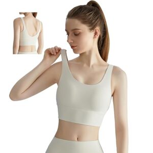 [MORGEN SKY] スポーツブラ ヨガウェア レディース ブラジャー 揺れない 着痩せ ハイサポート 美背 Uバック 吸汗速乾 抗菌 ナイトブラ ノンワイヤー カップ付き おしゃれ フィットネス ランニング WX437 (JP, アルファベット, S, ベージュ)