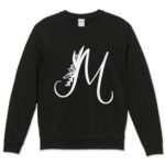 プリントトレーナー メンズ長袖スウェット。裏起毛で暖かく、クルーネックデザイン。Mサイズ、ブラック(黒)でおしゃれなスタイルを演出。商品コード019229。