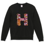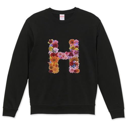 おしゃれなプリントトレーナー メンズ用長袖スウェット。裏起毛で暖かく、クルーネックデザイン。カラーはブラックで M サイズ。フォントやアルファベットのプリントがアクセント。