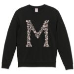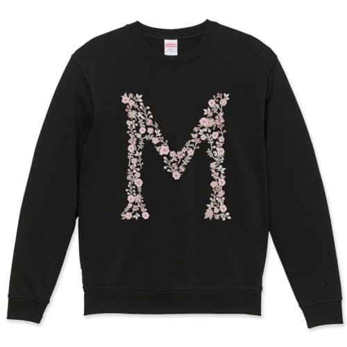 「プリントトレーナー メンズ」はおしゃれなクルーネックの長袖スウェット。裏起毛で暖かく、Mサイズのブラック(019573)のアルファベットデザインが特徴です。