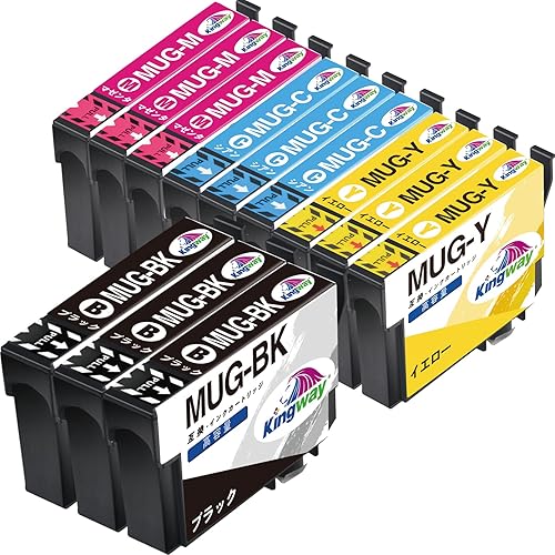 Kingwayのエプソン(Epson)対応互換インクカートリッジMUG-4CLは4色セット×3(計12個入り)。残量表示機能付きで、EW-052AおよびEW-452Aに適応。最新チップ型で高品質な印刷が可能です。