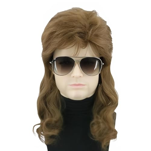 ドナリーウィッグのマレットスタイルかつら。80年代ロックンロールをテーマにしたコスプレやハロウィン、文化祭、パーティーに最適。ライトブラウンのウェーブデザインで、ヘビメタ風のスタイルを演出します。