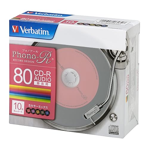 バーベイタムジャパンの音楽用CD-Rは、80分録音可能で、レコード調5色のカラーレーベル付き。1-24倍速に対応したMUR80PHS10V1、10枚セットです。