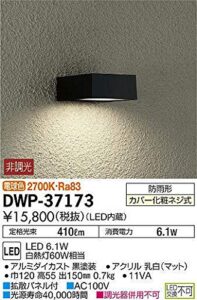 大光電機(DAIKO) LEDアウトドアライト (LED内蔵) LED 6.1W 電球色 2700K DWP-37173 黒