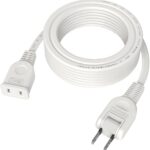 KIMOCの延長コードは5mのホワイト1口で、15A、125V、1500Wに対応。180度スイングプラグ搭載、火災予防絶縁キャップ付き。耐寒・耐熱で柔軟性と耐久性があり、家庭用や作業用に最適。RoHS指令対応の安全設計。