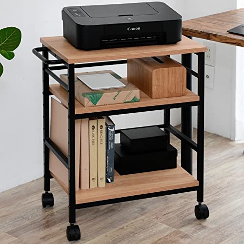 山善(YAMAZEN)のデスクサイドワゴンは、幅35cm、奥行55(61.5)cm、高さ70cmで、A4対応。キャスター付きで移動が便利で、棚板の高さ調節も可能。プリンター台やゲームラックとしても使えます。組立て式、オーク色。