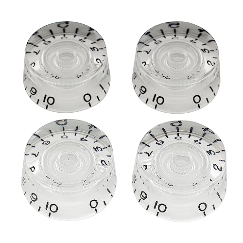 Musiclily Proインチサイズ USA レスポールスタイルのエレキギター用スピードノブ(トランスペアレント)は、4個セットで提供され、スムーズな操作性とスタイリッシュな外観を兼ね備えたパーツです。
