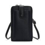 軽量なスマホショルダー、PUレザー調のスマホポーチです。斜め掛け可能で、縦型デザイン。お財布機能も備えており、便利なレディースアイテムです。