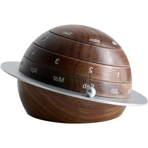 Yubbuioのブラックウォールナット無垢材製回転式卓上永久カレンダーは、ヴィンテージスタイルのクリエイティブなデザインで、ホームデコレーションや装飾アクセサリに最適です。