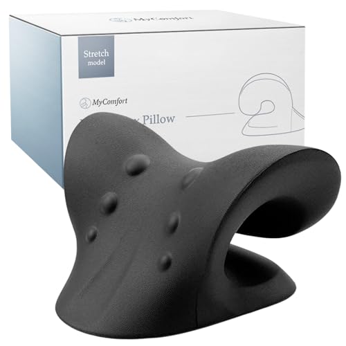 [めざましTVで紹介] MyComfort 首 ストレッチ 首枕 [自宅でたった5分] 首 肩 肩甲骨 を伸ばす 枕 首用 肩用 健康器具 首まくら ネックリラックスピロー ギフト 敬老の日 プレゼント 誕生日 に (ブラック, ストレッチモデル) 高価買取中