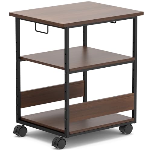 MIYOKI プリンター台は、キャスター付きの幅60cm、奥行50cm、高さ70cmのラックです。総耐荷重90kgでA3・A4対応、コピー機やサイドデスクとして利用可。9段階調節可能で、組立も簡単です。(ブラウン)