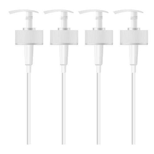 MYOCホワイトポンプディスペンサー500ml。高さ19cm、ネックサイズ28/30mm。耐久性のあるプラスチック製。ローション、シャンプー、コンディショナー、DIY美容・スキンケアに最適。4個パック。